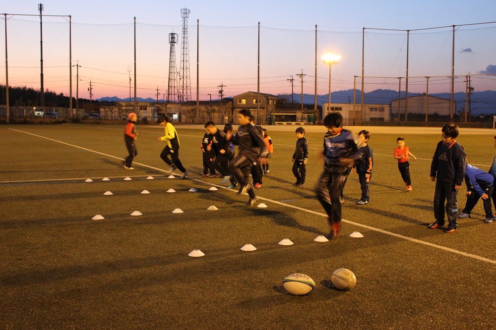 4月19日金曜自主練習金曜の夜はラグビーの夜。小学生も中学生もラグビーを楽しみました。