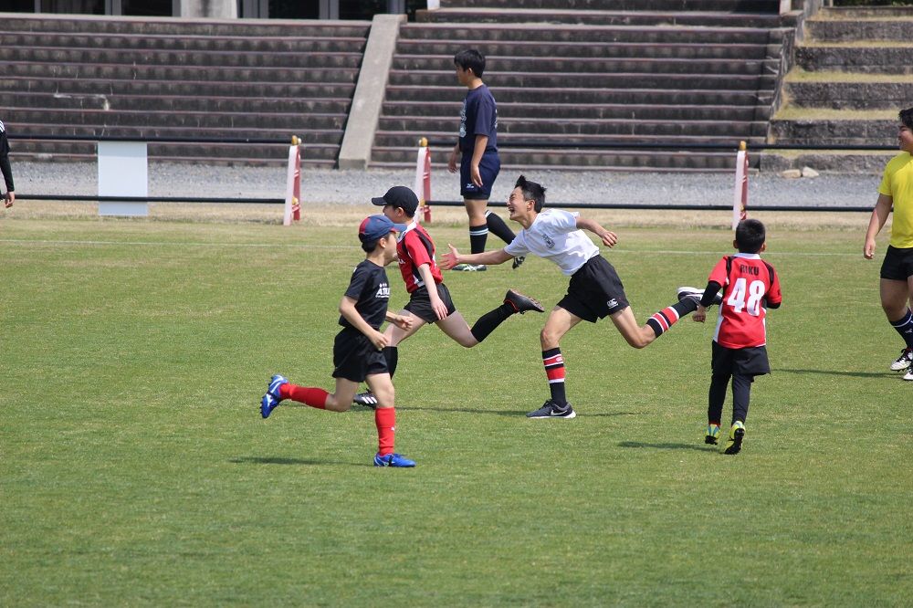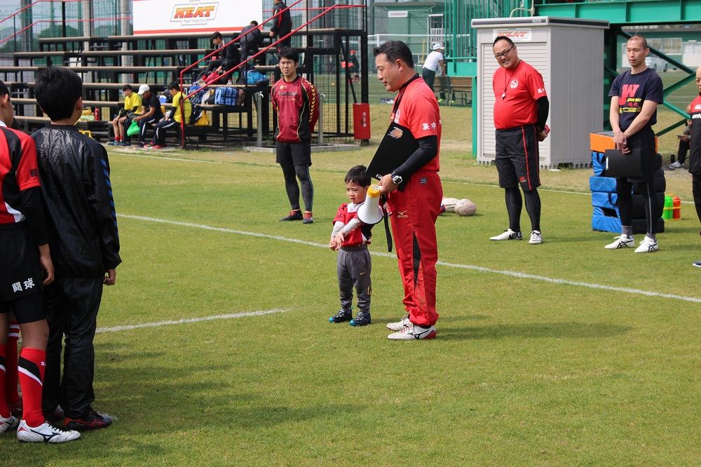 4月7日午後通常練習グレードが進級した学年は緊張した面持ちでしたが、春を通り越して 初夏を思わせる陽気の中、新年度スタートに相応しいいい練習が出来ました。鈴鹿RS名物 アイスブレイクの手繋ぎ鬼ごっこ。ボールを持たない練習のすべての要素が含まれてます。なにより みんないい笑顔。グレード別練習。どのグレードも賑やか。グレードの先輩となった学年からは、さっそく後輩を思いやる声掛けやエスコートする行動が見受けられました。すばらしい。今日の幼児はちょっと少な目。コーチ4人体制でいたり尽くせりの練習。幼児ラガーマン、ラガール募集中。大所帯の中学年はみんなよく声が出る。低学年はタグラグビーの要素も加えながら。高学年は高学年らしいアクセル全開の練習。卒校生も HEAT OB の手ほどきを受け 個人練習。中学年、高学年はさっそく熱のこもった試合形式の練習。練習の最後は常に試合形式。試合の中でのスキル発揮を養っていきます。蝶々も一緒に。中学生はきつい練習も乗り越えて行きます。(今年度もカメラをかまえてくれたのはNgtコーチ)以上4月7日楽しみな1年間がスタートしました。
