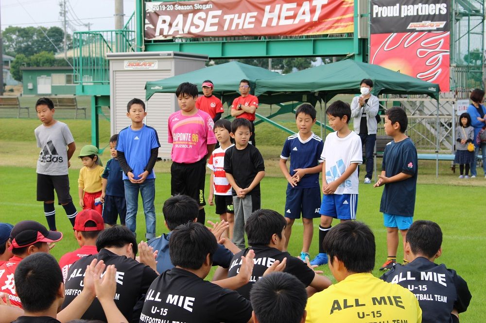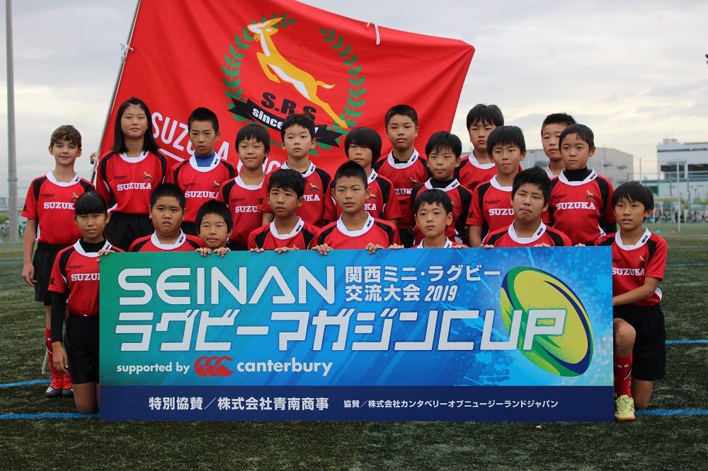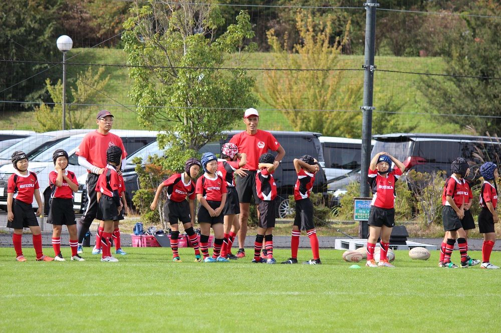 10月26日27日ラグビー三昧の週末。題してHappy Weekend今日は紹介だけ。10月26日小学5年6年生は「SEINANラグビーマガジンCUP 関西ミニ・ラグビー交流大会」出場の為大阪へ。記念Photo開会式戦いを終えた後中学生はチームみえジュニアU-15の練習会で朝明高校さんのグラウンドへ。中学1年生中学2年3年生10月27日AM全グレード揃って鈴鹿の通常練習。なんと10名もの体験キッズが練習に来てくれました。また待ってます!練習の最後は、HondaHEAT、そして日本代表のレメキ選手が練習に来てくれたんで、W杯お疲れ様!そして、感動と興奮をありがとう!の集合写真ほんとにほんとにありがとう。10月27日PMチームみえジュニアU-12交流戦。近畿地区屈指の力を誇るアウル洛南さんをお招きして。ノーサイド後の三重U-12選抜選手とアウル洛南さん(鈴鹿の生徒が1名体調不良で欠席… 残念…)チームみえジュニアU-12鈴鹿U-12以上Happy Weekend。ラグビーマガジンCUPと通常練習の模様は後日お届けします。