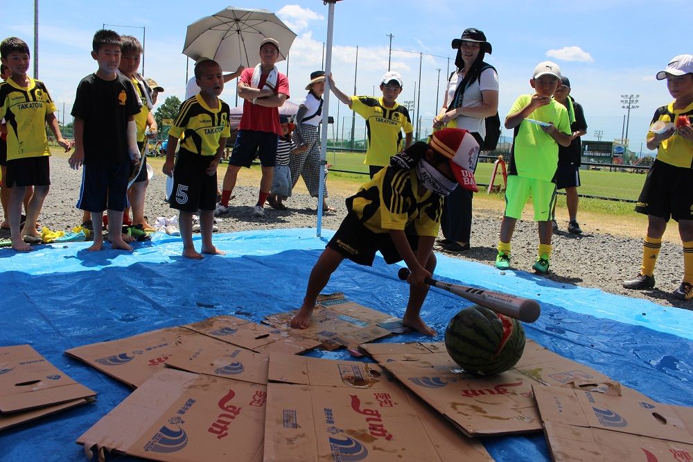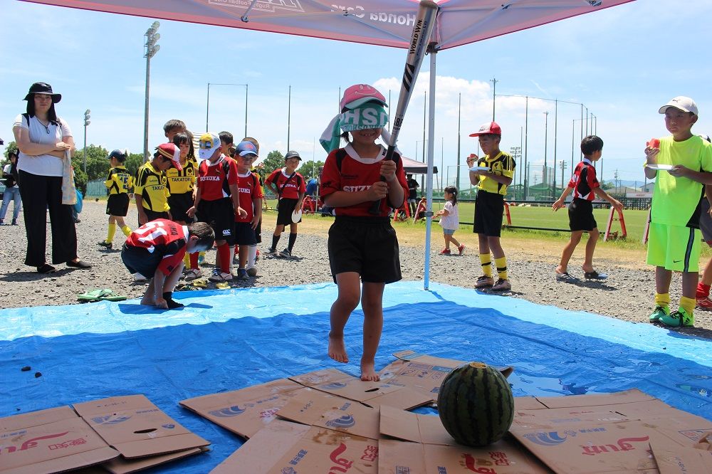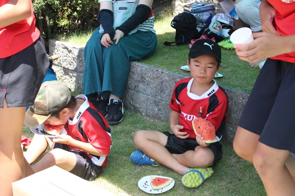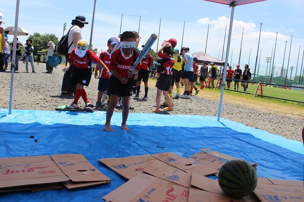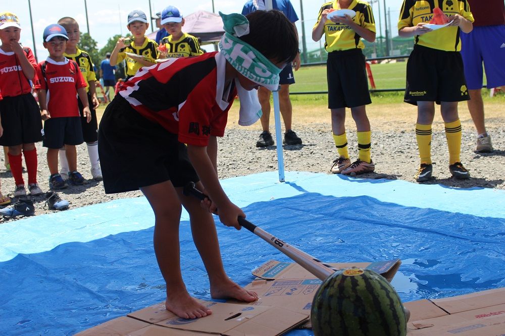 試合と合同練習のあとは 鈴鹿RS 夏の風物詩、スイカ割り。