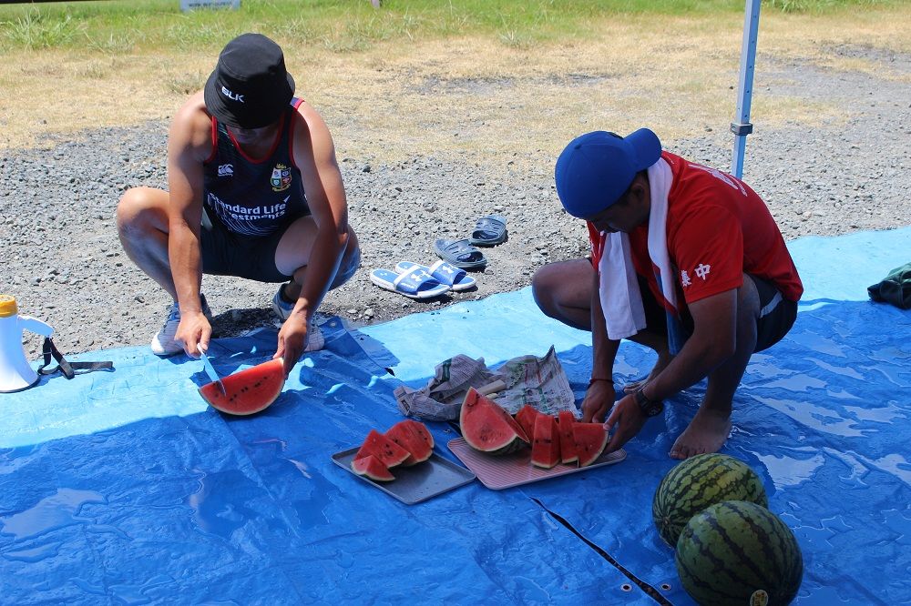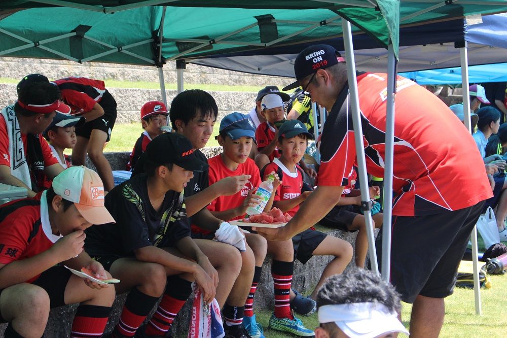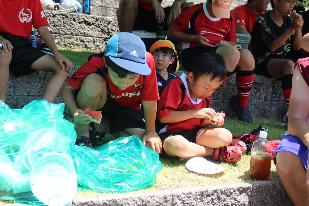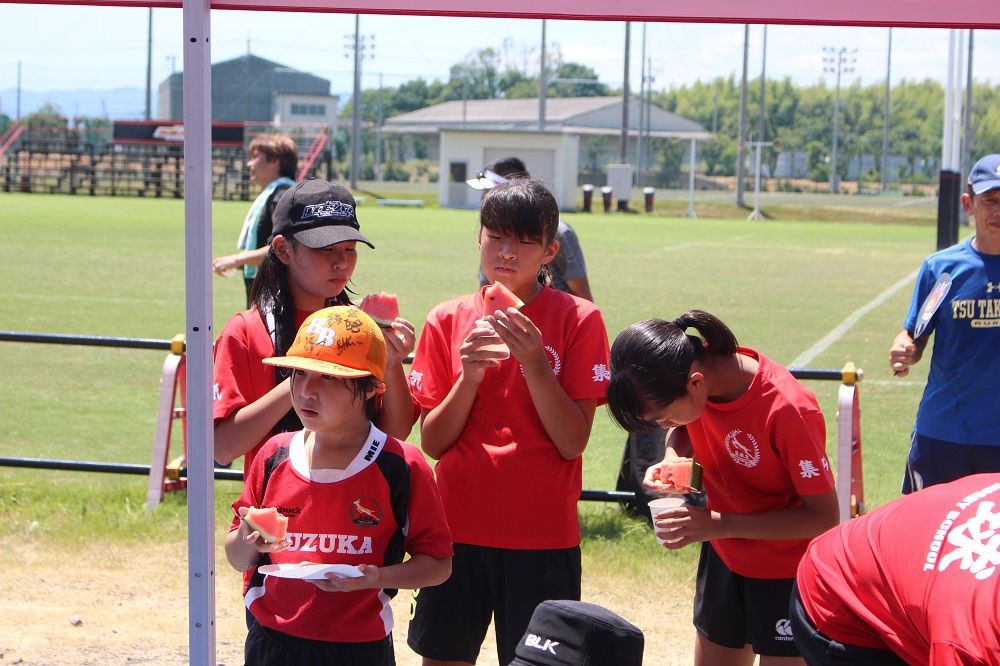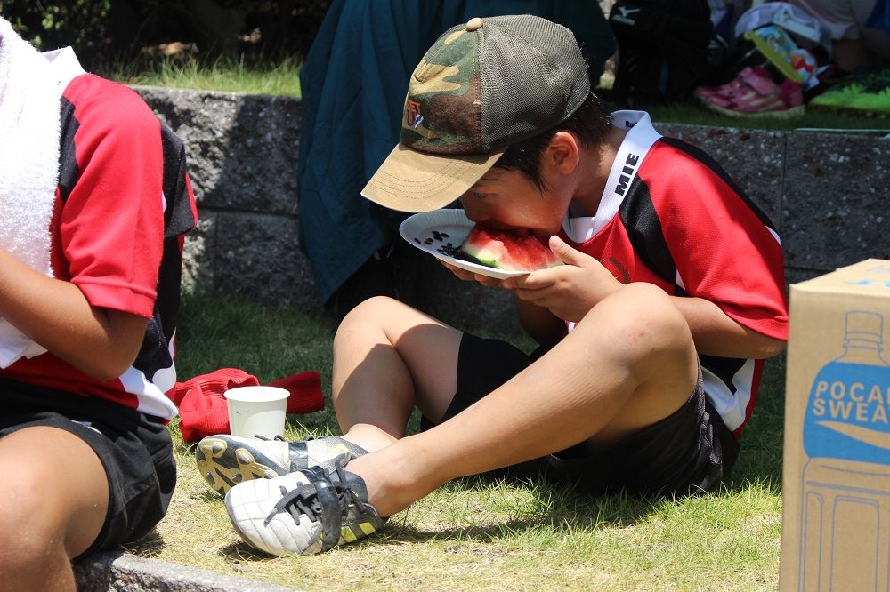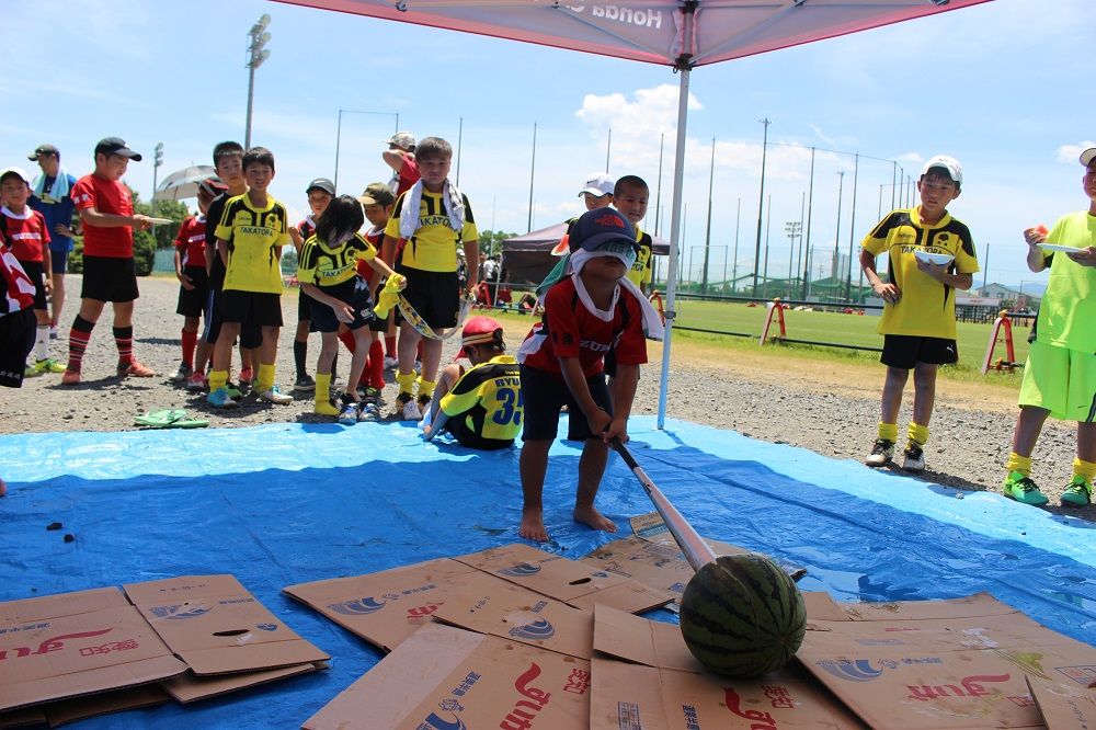 試合と合同練習のあとは 鈴鹿RS 夏の風物詩、スイカ割り。