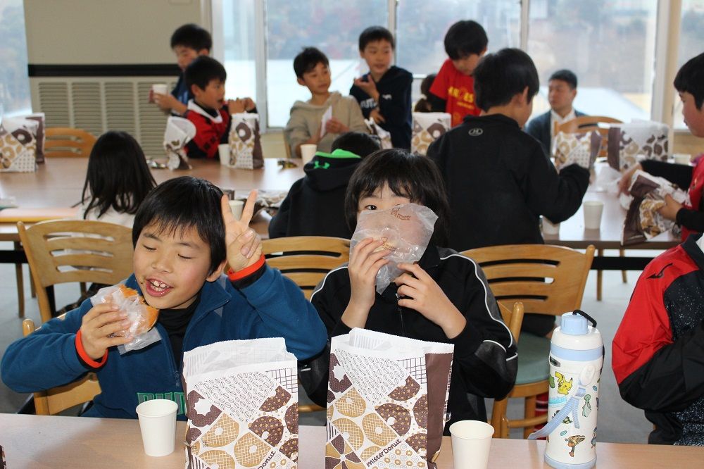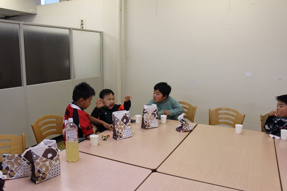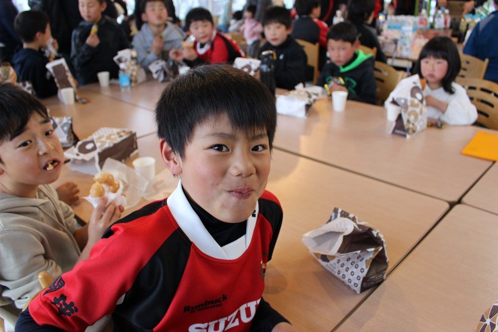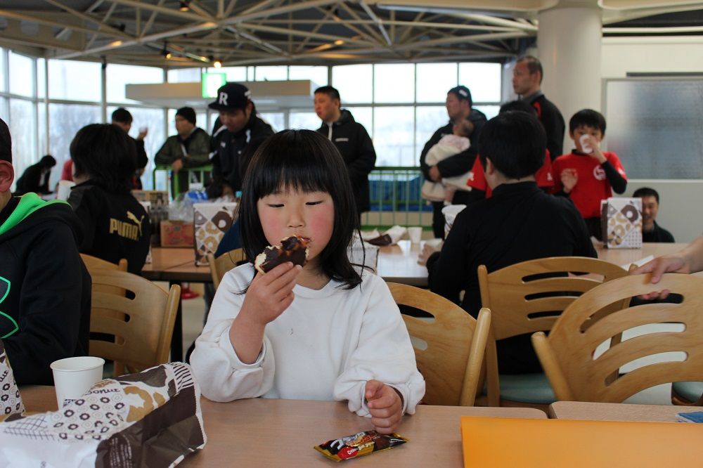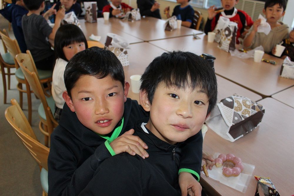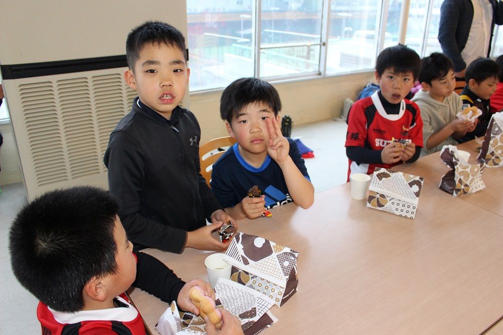 午後の部 フライアップパーティー2018年度の締めくくりは、子供たちもコーチも保護者の皆さんも一緒になってフライアップパーティー。おもてなしは、昨年から引き続いて大人気のドーナツ。このドーナツを嫌いな人はいませんね。保護者のIさんからチョコの差し入れも頂きました。このチョコを嫌いな人もいません。たぶん。あんなにたくさん。感謝です。ありがとうございました。みんな笑顔で1年の締めくくりです。