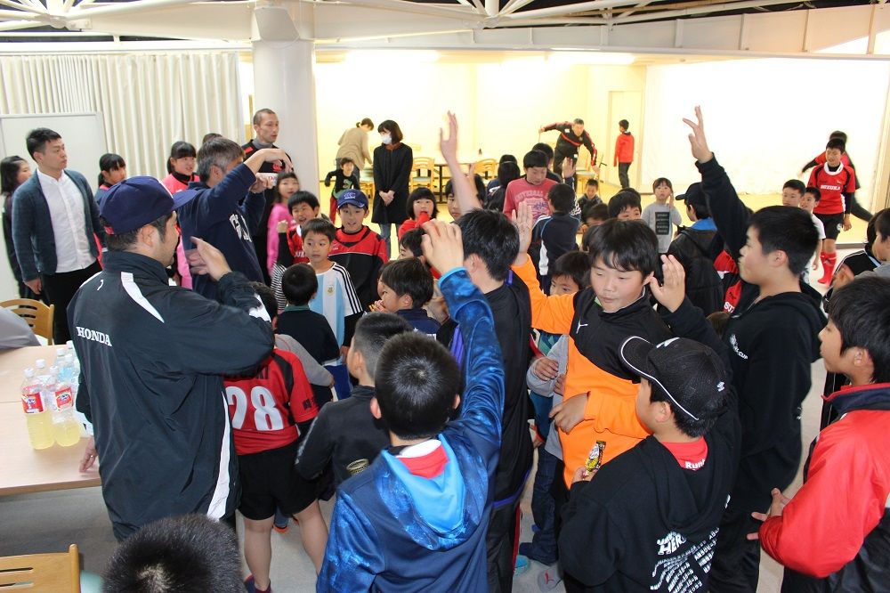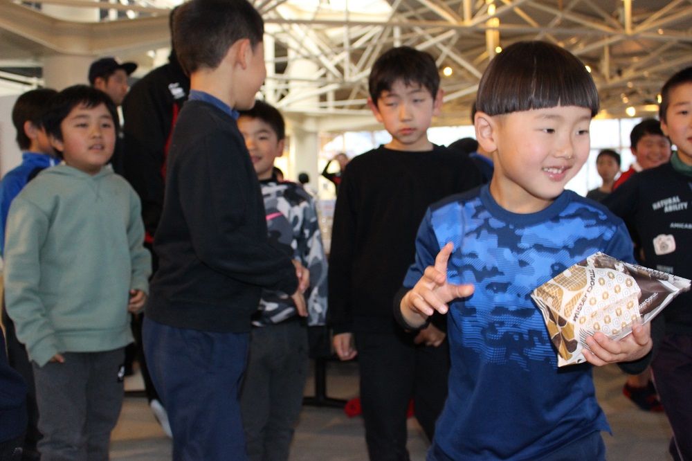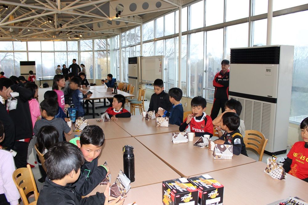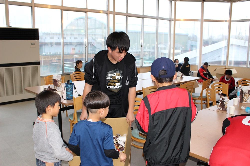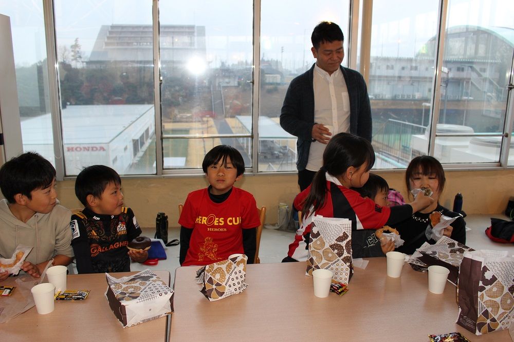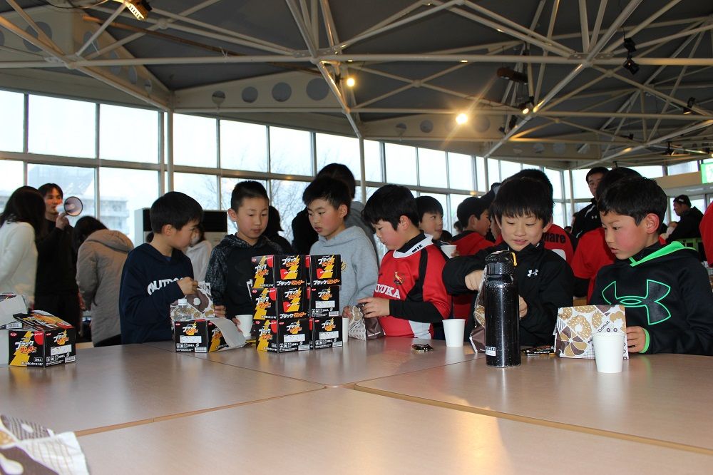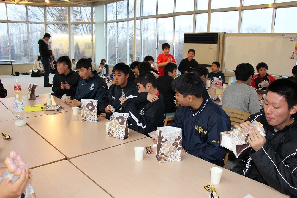 午後の部 フライアップパーティー2018年度の締めくくりは、子供たちもコーチも保護者の皆さんも一緒になってフライアップパーティー。おもてなしは、昨年から引き続いて大人気のドーナツ。このドーナツを嫌いな人はいませんね。保護者のIさんからチョコの差し入れも頂きました。このチョコを嫌いな人もいません。たぶん。あんなにたくさん。感謝です。ありがとうございました。みんな笑顔で1年の締めくくりです。