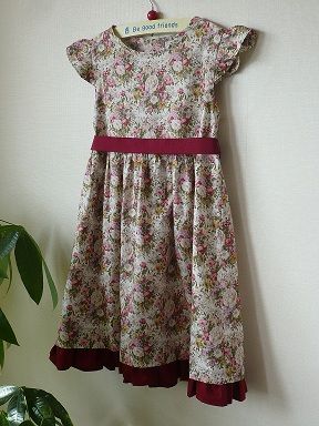 満開の桜の中、世間では、新学期が始まっていますね。幼稚園児の娘は、まだ春休み中。この春休み中に、いろいろあったけれど、ビッグイベントの、ピアノの発表会も無事終えました。春休みに入って、いろいろドタバタだったんですが、やっぱり、娘の服を作りたいわぁ~と思い、今年も作りました。今年は、去年のようなドレスではなく、お出かけ着にもなるように作りました。前回の日記の★と、ほぼ形は一緒。スカートの裾に、リボンと同じ色のフリルをつけてみました。ちなみに、リボンは、★のワンピースと同じです(使いまわしです)この花柄の生地は、娘が選びました。娘好みの、ラブリーな花柄ですね。あまりにもラブリーなので、深紅のリボン&フリル&クルミボタンで、全体の印象を引き締めてみました。生地 「いすず」 YUWAオーソドックスローズブーケ 白×ピンク参考図書 おんなのこのワードローブ************さて、発表会ですが・・・・。今年で2回目。落ち着いて、上手く弾けましたよ。親の方が、緊張しましたけどね・・・。娘が着ると、こんな感じです。↓ にほんブログ村↑ランキングに参加しています♪ポチッと、クリックお願いします^^/