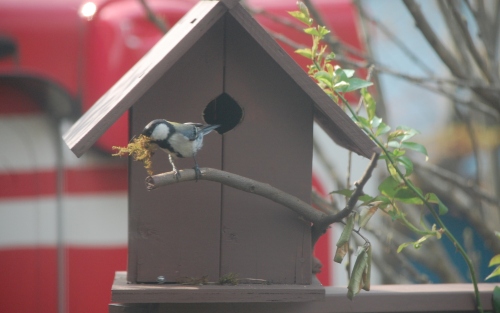 3月にバラの誘引の為にラティスフェンスを作り、ついでに飾りのつもり巣箱をフェンスの上にのせて見ました。一ヶ月もしないうちにシジュウカラの夫婦?がせっせと巣作り始めたのです。通路近くで、高さが1.8m程度のためか何度も様子を見に来たのですが、安全な場所ではないと判断したのか、残念ながら抱卵までいかず子供の巣立ちは見られませんでした。巣箱の周りにバラは咲き、子育てがみられるはずでしたがチョッピリがっかりしました。でもバラは昨年より面倒を見たので?沢山の花が咲いてくれました。今はハンギング教室と寄せ植え教室に通い、作品に自己満足してます。その内UPしますので診てください。