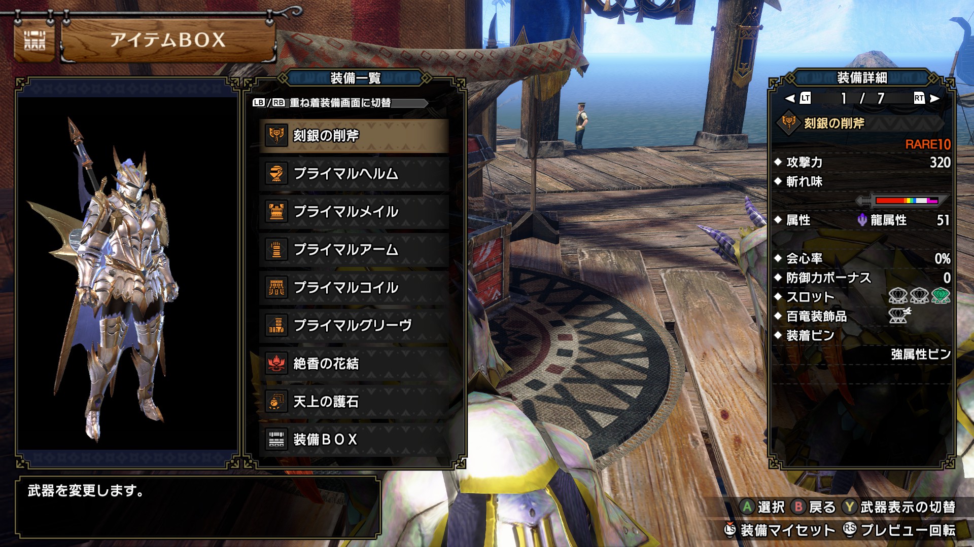原初メル・ゼナの装備を全て整えました。正直何度も何度も3乙して、やっとのことで作成しました。この作成しようと頑張っている過程が面白いのがモンハンの良いところです。ちなみに、この装備は装飾品付け放題なので装飾品がないと真価を発揮しません。克服系モンスターを除くサンブレイク実質最強モンスターです。スピード、攻撃力そのどれもがトップクラスです。ライフが少なくなると赤くなるのですが、瞬間移動してくる回数や必要に狙ってくるAIなど非常に強力なモンスターです。