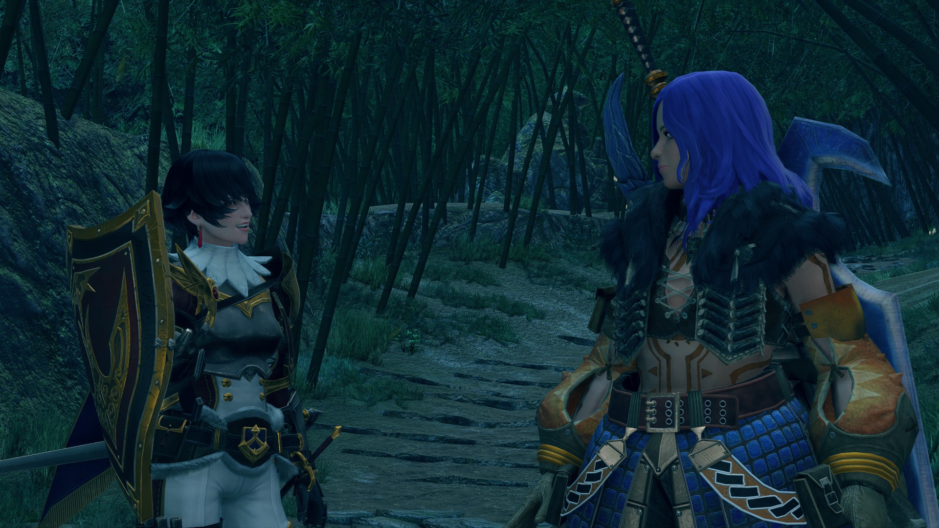 最後の盟勇紹介はカムラの里長フゲンです。生ける伝説フゲンのメイン武器は太刀であり、その威厳もさすがといったところです。ただ、盟勇としての性能はポンコツで環境生物のカエルで自爆するなど正直全く使えません。マスターランクにはイソネミクニの亜種が出てきます。イソネミクニは眠り攻撃でしたが、亜種は氷攻撃をしてきます。こいつの素材から作成するチャアクは強属性ビンのチャアクでは最強なので是非作成した方がいいです。