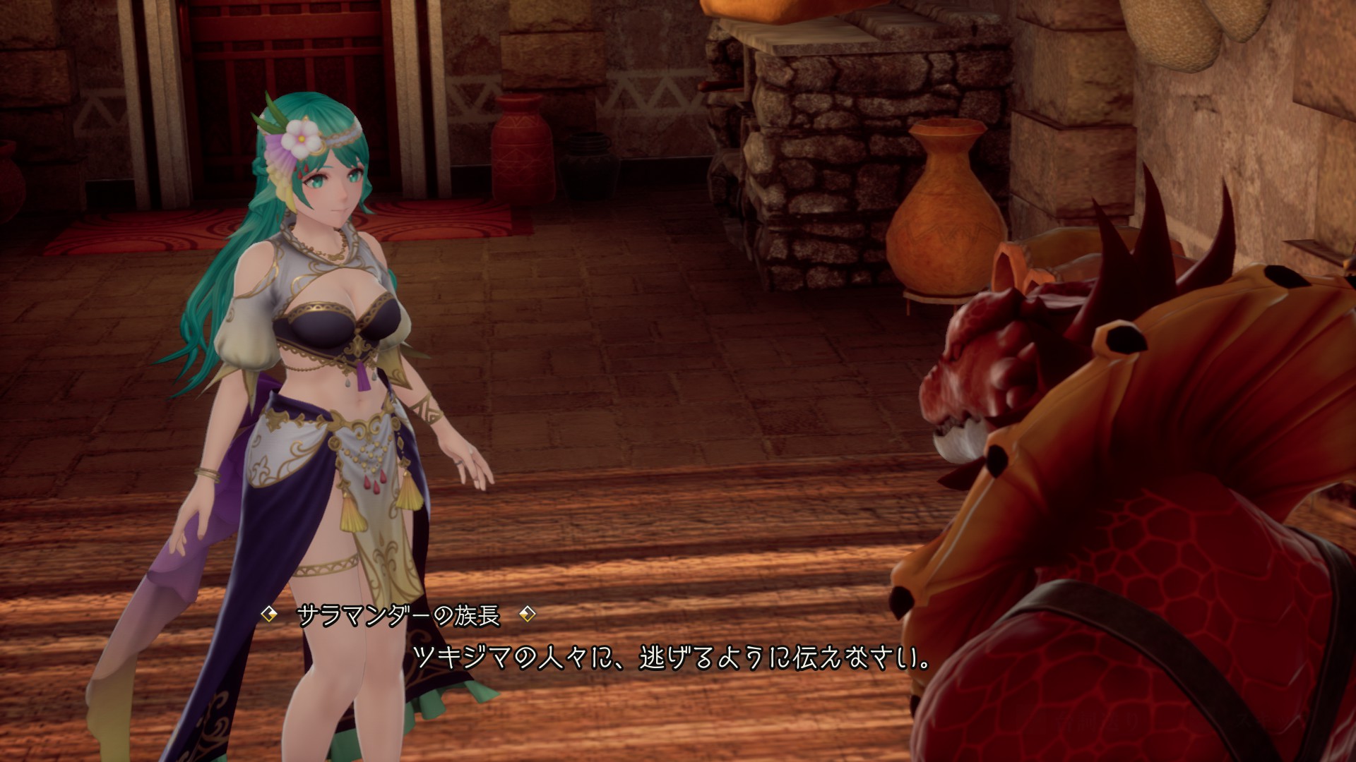 再びコムルーン島を訪れると火山大噴火の危機となっていました。サラマンダーの族長からはツキジマの人々を非難させるようにアドバイスされます。言われるがままにツキジマの町長に火山が大爆発しそうだということを伝えます。年代が進み、コムルーン島では地震が頻発しており町民たちも異変を感じていました。サラマンダーの族長は火山の火口にある大きな岩を破壊することで大爆発を防ぐことが出来ると言っていたので、早速コムルーン火山に行くことにします。