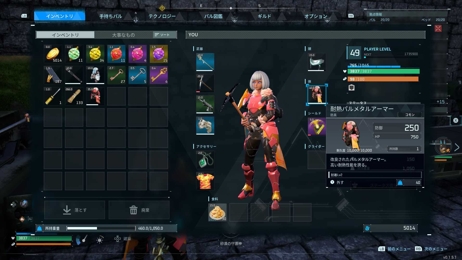 耐熱のパルメタルアーマーも作成して防具は準備万全!