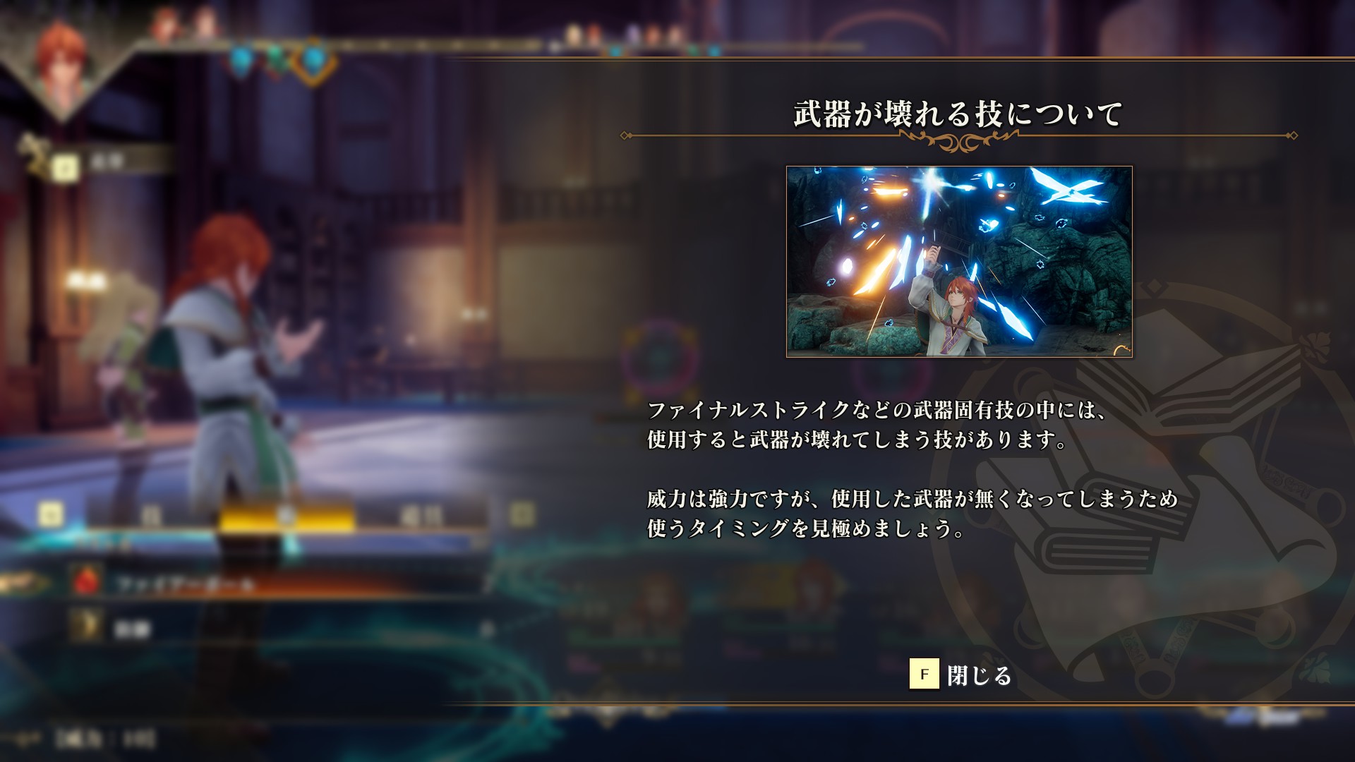 武器が壊れる技と言えばファイナルストライクを思い出します。 わけも分からず使って武器が砕けたのは良い思い出です。 初見だととりあえず使ってみて武器が無くなった人はたくさん居ると思います。