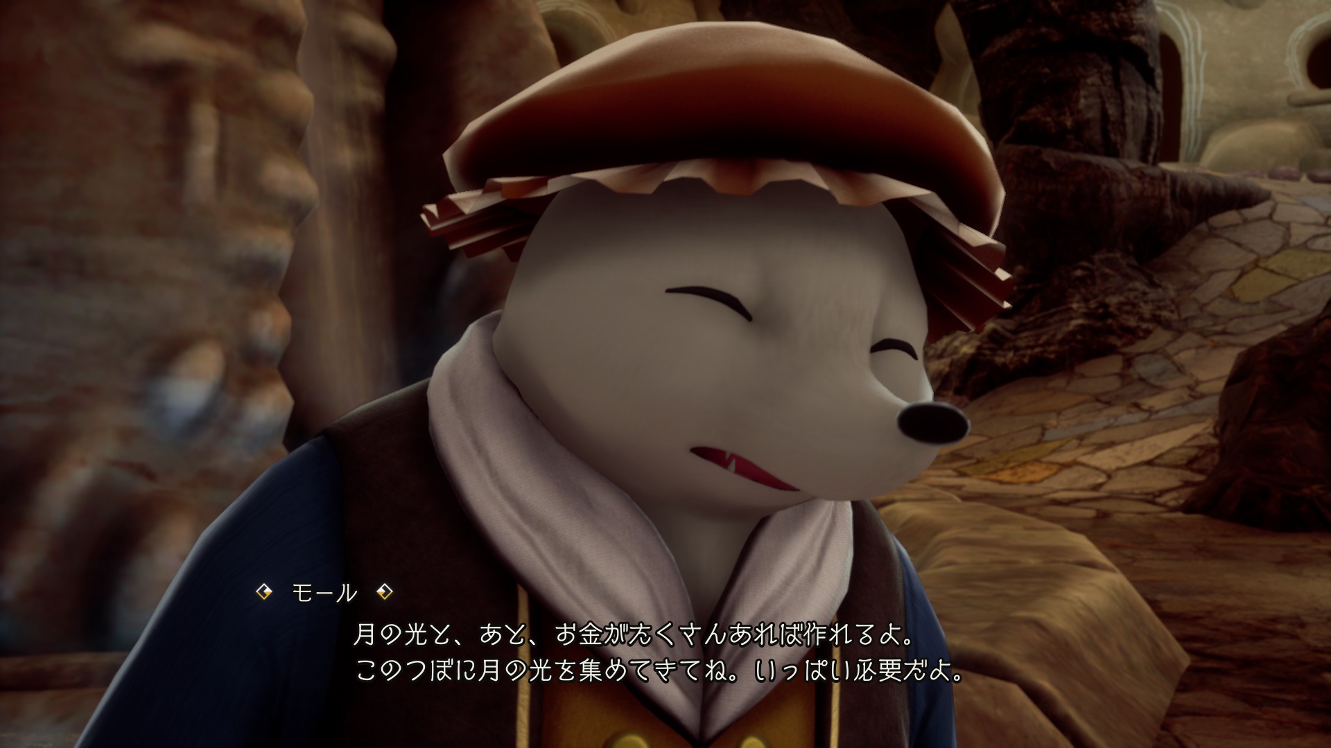 手先の器用なモール族は月光のクシを作れるということですが、壺いっぱいに月の光を集めてきてと頼まれます。