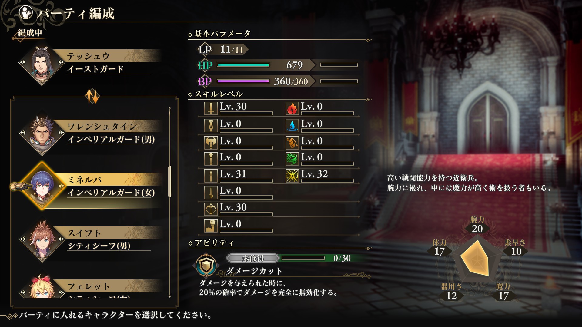 男インペリアルガードのワレンシュタインは腕力23、体力20の前線派。