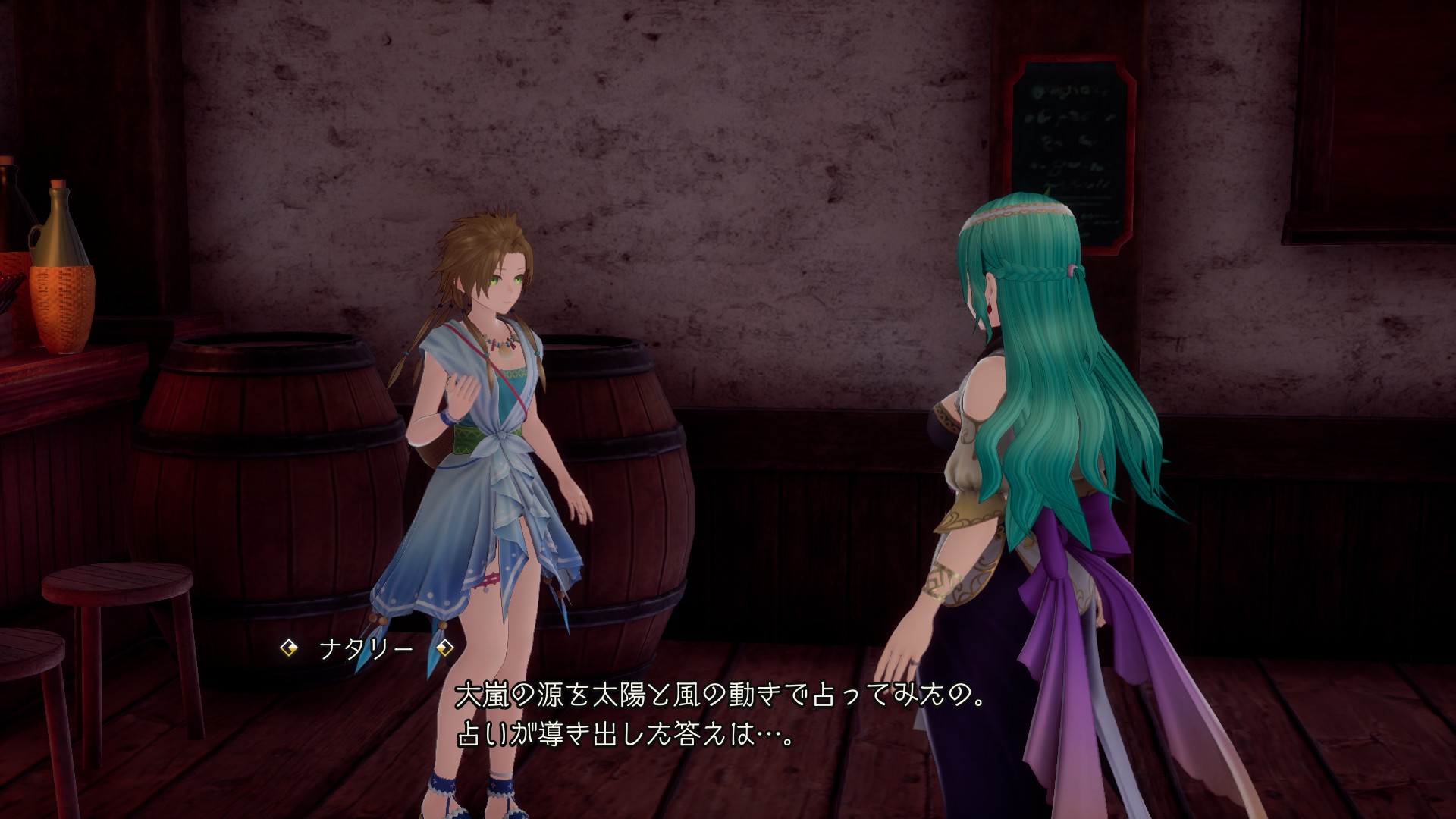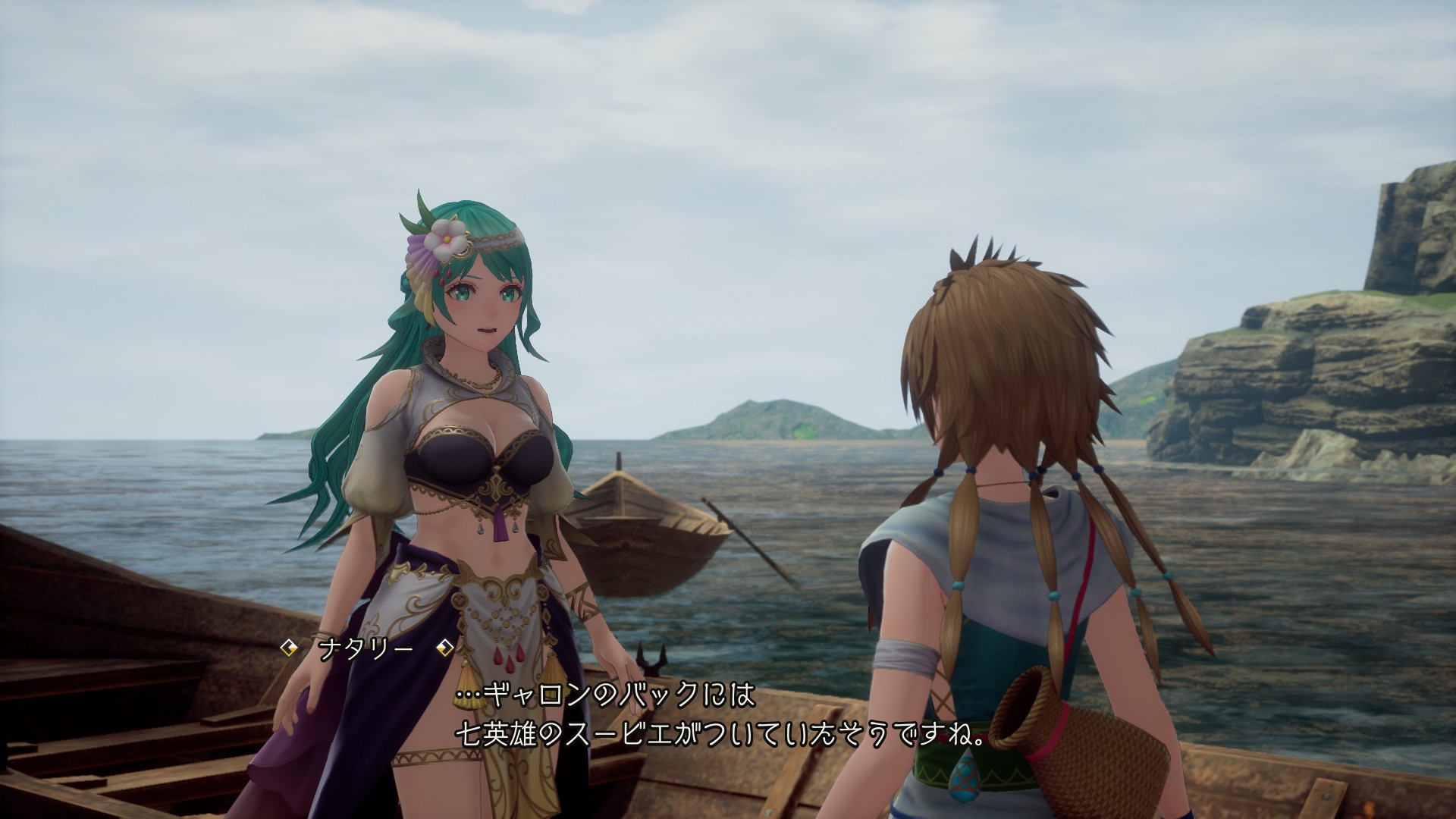 ある程度年代が進むとトバでやむことのない大嵐についての情報を得ることができます。こちらはトバにいる海女さんです。今更ですけど、海女ってクラス今だとかなり危ないような気がします。沈没船を進んで行くと最奥ではヌオノで逃走したギャロンが待ち構えています。闘争したギャロンは幽霊となってもなお皇帝に恨みを抱いていたようです。ギャロンのことなど覚えていないという台詞を選択すると激高します。幽霊ギャロンは生前と違って正々堂々戦ってきます。物理攻撃が中心で危ない攻撃もないので、弱いボスの部類かと思います。