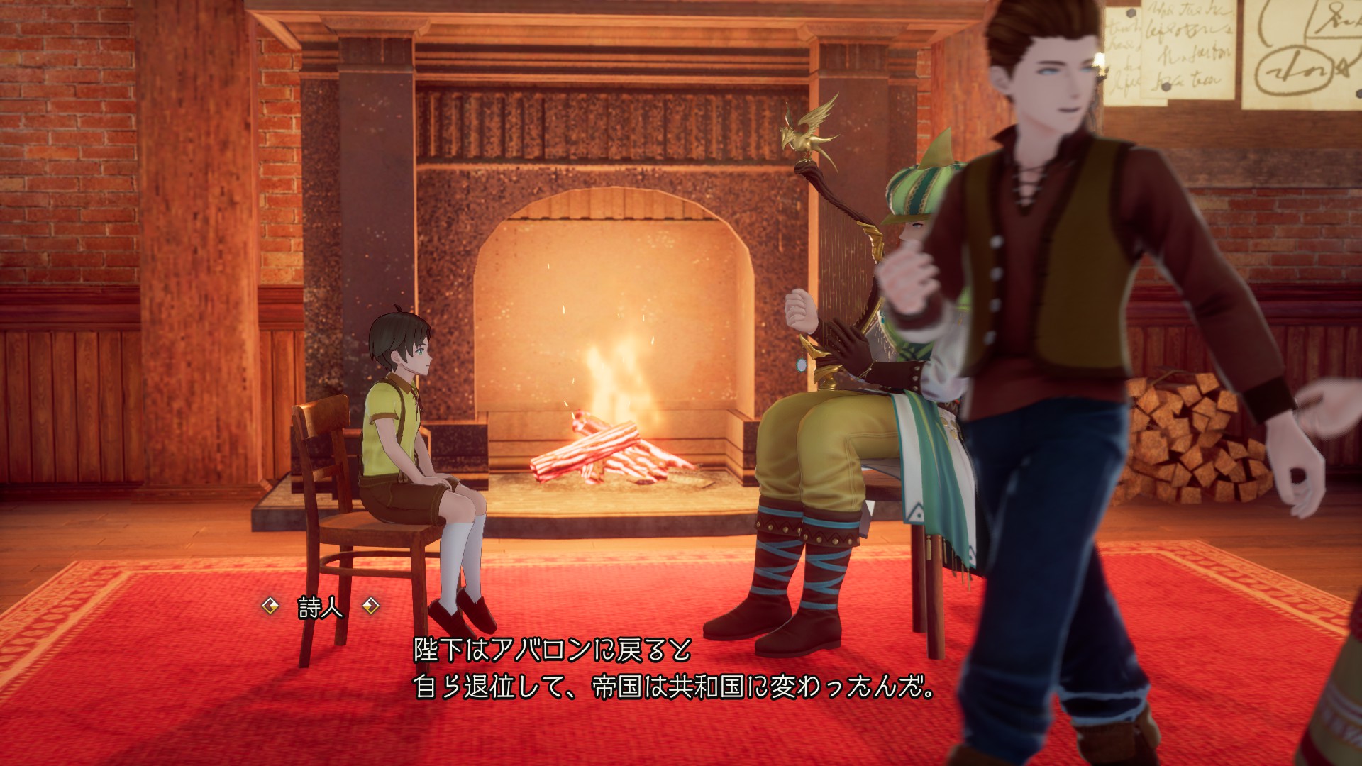 オープニングの詩人の弾き語りのシーンに再び戻ります。七英雄を倒した後はアバロンは共和国になったようです。詩人が弾き語りを終えて向かった先には…。見覚えのある後ろ姿。実は詩人の弾き語りを間近で聞いていた最終皇帝。凄く良い演出だと見入っていました。酒場を出ると色々な仲間に顔を合わせながら宮殿まで歩いて行きます。ジェラール、ヴィクトールなども登場して思わずほろっときます。そして、最後は封鎖された玉座が映されてENDです。リベサガ2、とても面白かったです