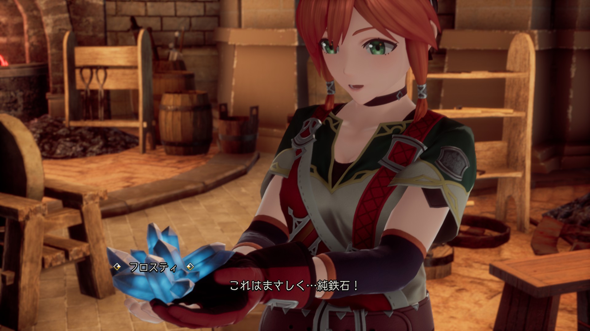 全世界を回って集めた純鉄石を鍛冶屋のフロスティに渡しました。これでちゃんとご先祖様に顔向けすることができますね。お礼にパーティーに加わってくれたので早速能力を見に行きます。帝国鍛冶職人はリベサガ2で新規で追加されたクラスです。腕力、体力、器用さがまんべんなく高い前衛タイプですが、少し平均的かなという印象です。特筆すべきはそのアビリティで、装備品の能力が10%も向上するというめちゃくちゃ強力なアビリティです。終盤では基礎値の高い装備品が出てくるので、その能力を大きく上げてくれます。