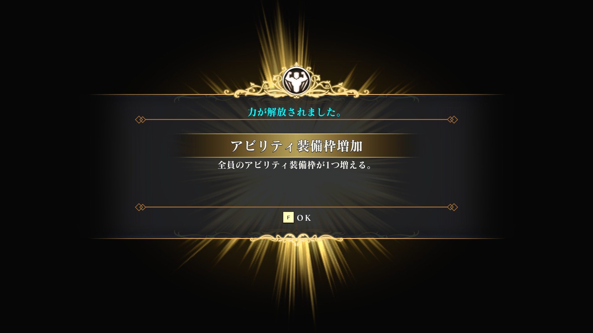 七英雄を倒してエンドロールが終わると新しいアビリティが解放されました。全員のアビリティ装備枠が1つ増えるってめちゃくちゃ強いですけど…。つまり、これってまだ終わっていないということですね。こ…このシルエットは…。クィーンですね。正直、リベサガ2はかなり面白いのでもう少し楽しみたいと思います七英雄撃破後は撃破直前から再開することが出来ます。