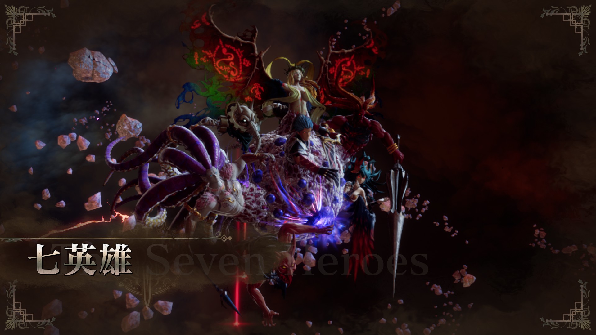 七英雄を全て倒したところで5連携が解放されました。連携攻撃は敵の行動を飛び越して攻撃できるので、行動速度が遅い味方も巻き込むことができます。リベサガの良い点として、基礎の難易度が高い分この連携が良い味を出していると思いました。遂に七英雄が全員揃いました。ここで見るとボクオーンって巨大人形の方が本体なのでしょうか。てっきり、ちっこい奴が本体かと思っていました。これが本当に最後のバトルになります。