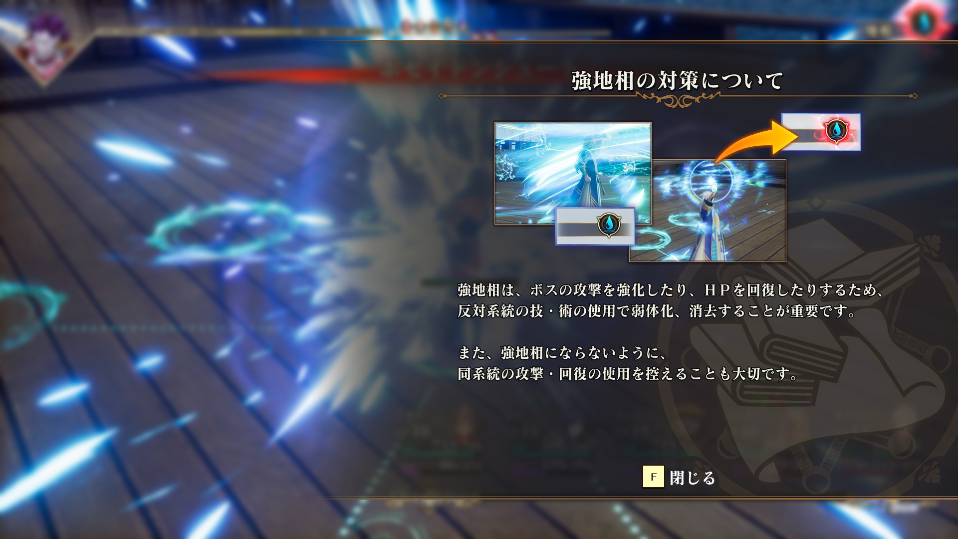 ボス戦では地相が大幅に強化されてしまう強地相という状態があります。最大HP次第ではありますが、平気で5桁回復してきたりします。七英雄の属性は対策をしておかないと長期戦になるので注意しましょう。氷海の支配者スービエ。このスービエは海の主を吸収しており、非常に強くなっている状態です。全体攻撃のメイルシュトロームが痛いので、水属性対策を必ずしましょう。また、槍の名手であるため各種の槍技を使用してきます。