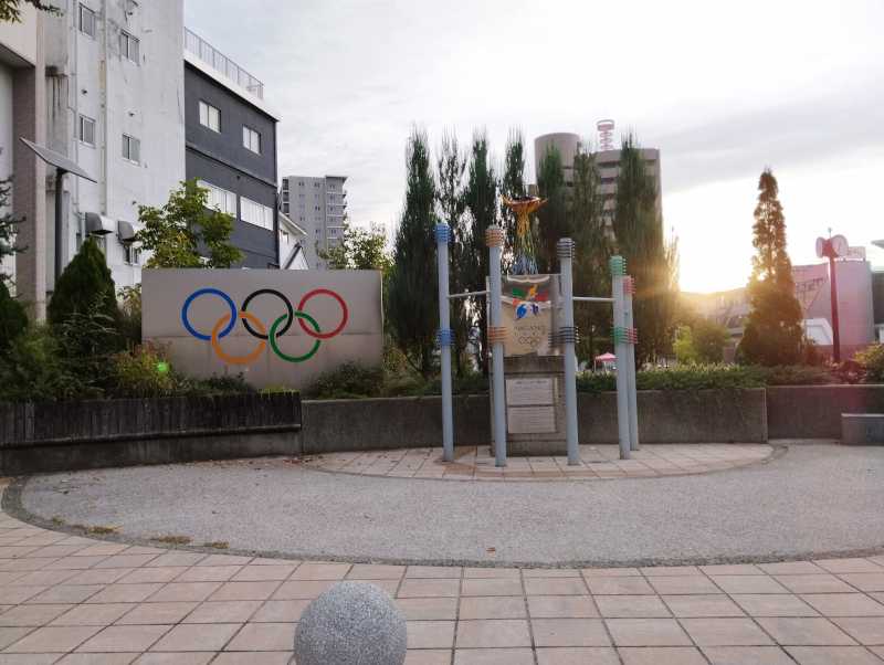 途中にあったオリンピック記念碑のあたりで、日の出。