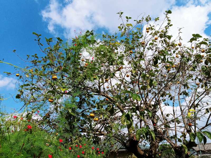 柿の実が、徐々に熟れ出しました。とりあえず、完熟したのを1個収穫。これから先は、カラスやヒヨドリとの収奪戦に。ただし、大抵は、完敗なのですがここまでお読みいただき、ありがとうございました。これからの一日が、あなたにとって良き日でありますように。