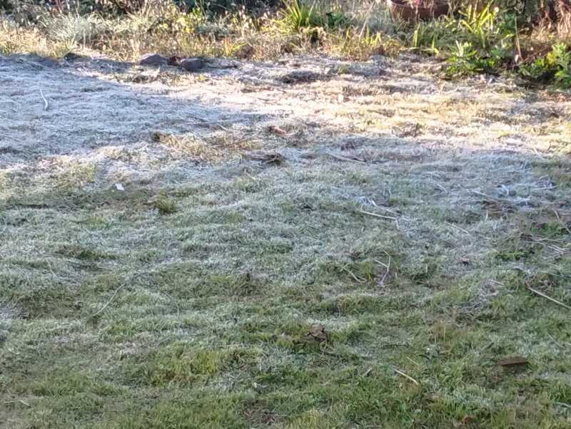窓の外を眺めたら、芝生が真っ白。初霜でした。この景色を眺めると、いよいよ冬だなぁ、と。とはいえ、明日の予想気温は、20度越え。う〜ん、一体、今の季節は何?ここまでお読みいただき、ありがとうございました。これからの一日が、あなたにとって良き日でありますように。