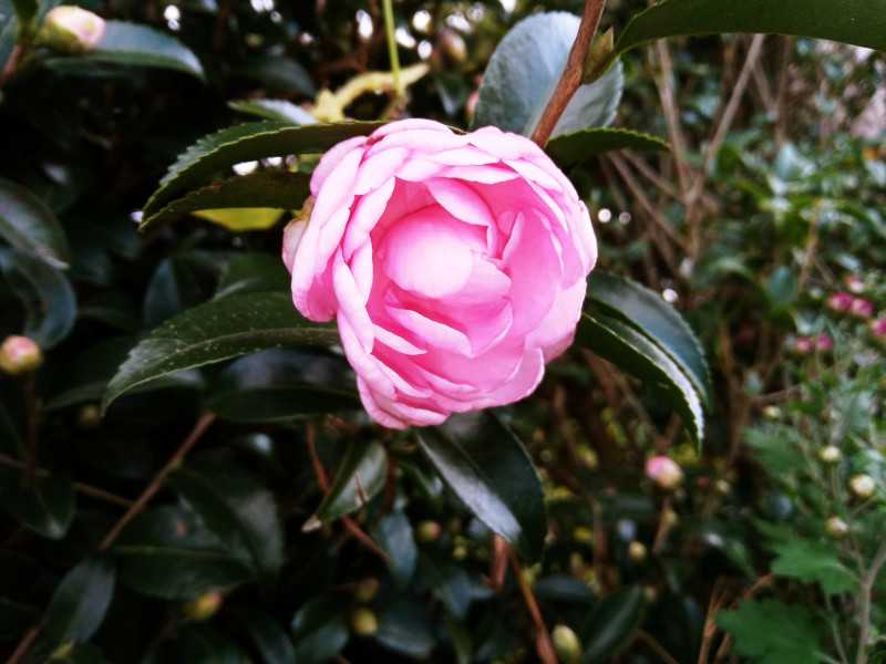 そういえば、垣根にしてる山茶花も、開花。とはいえ、色がパッとしません。原因は、まあ、桜島の降灰かなぁ?と。こればかりは、仕方ありません。だから、気を取り直して、綺麗に咲いてる、つるバラを。手に持って撮ろうとした瞬間、トゲがチクリ。おかげで、盛大に、ぶれた次第でここまでお読みいただき、ありがとうございました。これからの一日が、あなたにとって良き日でありますように。