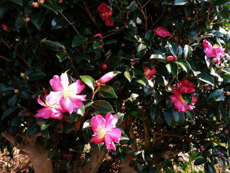 灰さえ降らなければ、綺麗なピンク色。山茶花の花が、垣根を鮮やかに。その下には、植えっぱなしの菊の花。近所のおばちゃんに「綺麗ね」と褒められました。実は、何の手も加えてないけどここまでお読みいただき、ありがとうございました。これからの一日が、あなたにとって良き日でありますように。