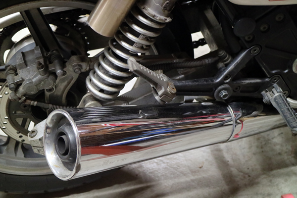 エンジンを掛けてみると、排気音は劇的に静かになった。スーパートラップに慣れているので、何だか物足りないが、車検を通すためには仕方がない。