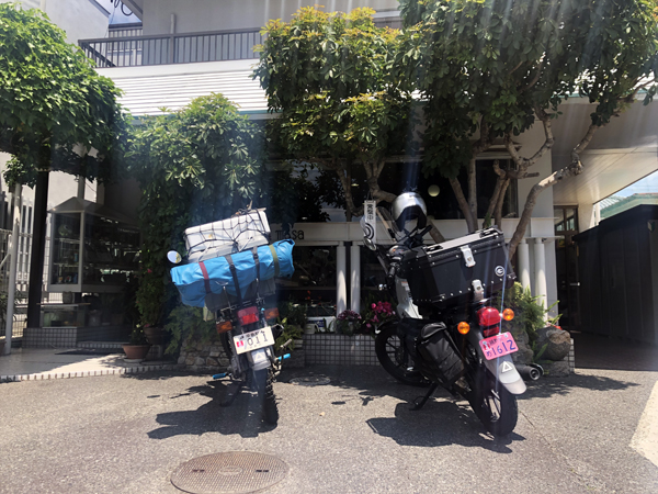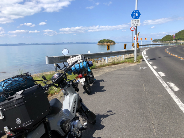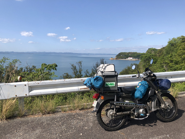 今回出動するバイクはフェリー料金を勘案してカブ90の出番となる。キャンプ道具は中止になった時から積みっぱなしになっており、追加で数点用意するだけなので朝一番で近所の会社に用事に出掛け、コーヒーの接待を受けていたら、妻から「クロスカブさんがもう到着して待っている。」との連絡を受け慌てて帰宅した。予定より20分も早い。