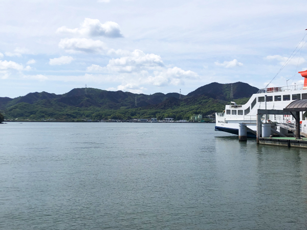 今日はカブ2台なので、信号が少なく二輪しか通れない道を交えながら山火事の痕が生々しい飽浦を通る最短ルートで新岡山港に到着。クルマの他にスクーター2台が乗船待ちをしていた。早速券売機で小豆島までの往復切符(原動機付自転車3,920円)を買って目前の高島の説明をしていたその時、クロスカブさんが財布に仕舞おうとしていた往復切符が突然の疾風に煽られ、手から離れ防波堤の上を転がった。2人とも「あっ!」という声を上げながら硬直したが、クロスカブさんの矢のような手さばきで海まであと10センチの所で捕まえた。ドキドキである。もう少しで3,920円が泣き別れとなる所だった。