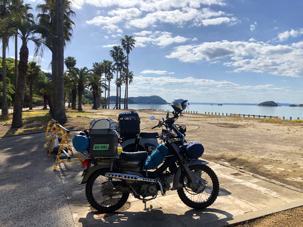 本日のキャンプ地は島の東北にある福田港手前の福田キャンプ場なので、海岸線のワインディングを走りながらディアベルが一緒なら何処にも止まらずコーナーを高速で抜けていくだろうなぁとインカムで話しながら無事到着。