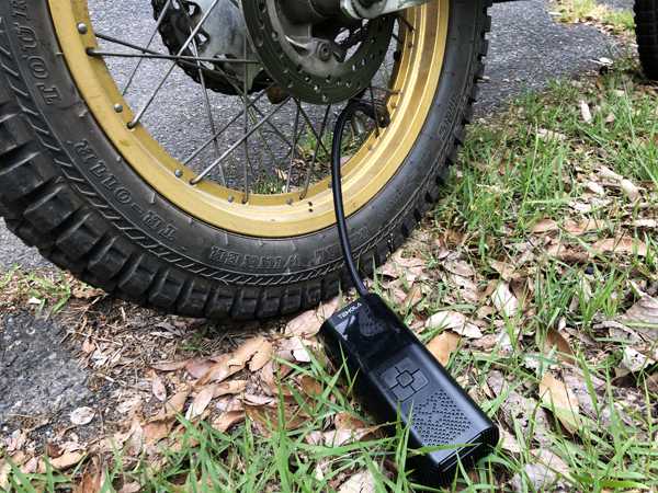 兵庫県方面と角南方面の分岐点で休憩を兼ねてタイヤの空気圧を元に戻すべく電動空気入れを繋ぐと前後共0.7気圧だった。やはり空気を少し抜き過ぎていたようだ。今日は剣山スーパー林道でも使用した電動空気入れを持参しているので、空気の注入は容易い。この空気入れの良い所は予めセットした空気圧になると自動でポンプが止まるので、エアーゲージが不要になるという事だ。