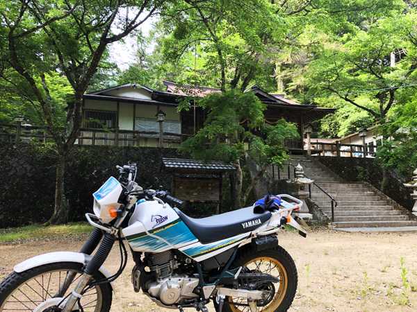 ドンキーベースにセローを格納し、改めて車体を眺めたら、ヌタ場での泥炭がシートまで跳ねて汚していた。オフロードを走った感はあるが、洗車が必要だ。今年に入って2回目のオフロード走行であったが、明るい虫明林道と暗い加賀美林道と両極端を満喫出来た事は良い経験となった。
