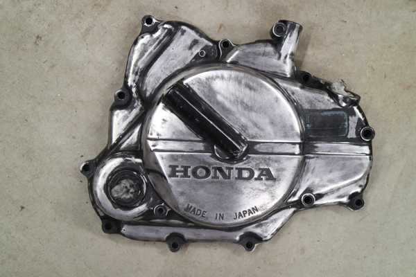 交換部品はあとガスケット(Rクランクケースガスケット11393-GE2-000)のみとなったところで、クラッチカバーのHONDAのロゴにシルバーで色を入れてみたくなり、筆ペンでフレームに使った塗料で塗ってみたが、老眼のため手元が何回も狂い、あちこちにはみ出して酷い仕上がりになった。やらなきゃ良かった。オフ車なので目を瞑る事にしてスルーだ。
