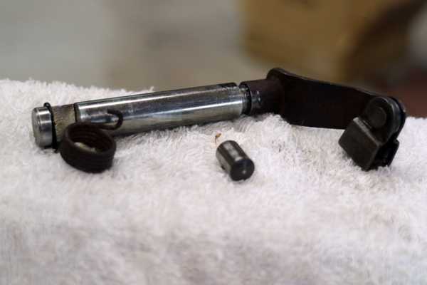 外れたと同時にキックスピンドルのバネも外れてバラバラになった。どのように取り付けられていたのか分からなくなったが、SMがあるので何とかなるだろうと思い、次に進む。