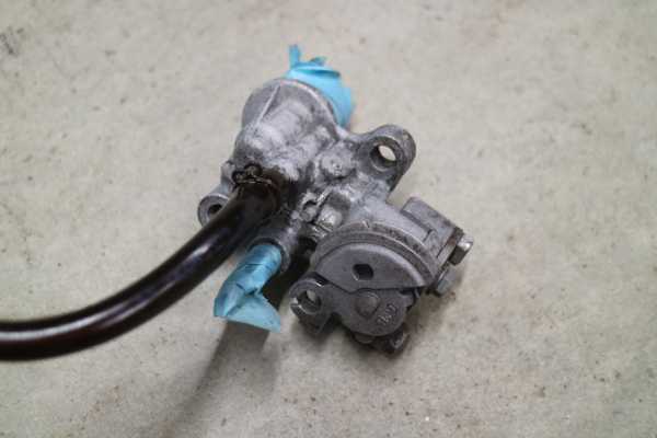 外したオイルポンプは複雑な形状をしているので、磨く事は諦めて、精密ドライバーで大まかに汚れを落とした後に簡易ブラストを行なったら、小さなHONDAの鋳型文字が浮き出て来た。流石、80年代のバイクは作りが丁寧だ。塗装をした後、Oリングを交換する。(オイルポンプOリング91301-147-023)