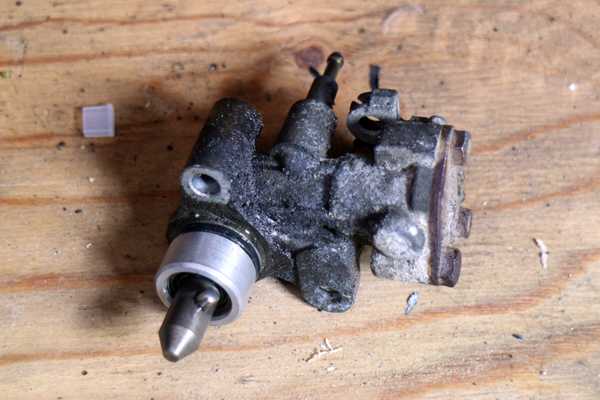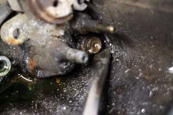 折角クラッチカバーを開けたのだから、ついでにアルミが粉を吹いて真っ黒に汚れたオイルポンプを外して磨こうとして真っ赤に錆びたプラスネジを回そうとインパクトドライバーを斜めにあてがいどついたら、いきなりナメた。う~んこれは困った。どうやって外そうかと眺めていたら、エンジンの左側にプラスネジを外すための穴が空いているのを見つけた。この穴にインパクトドライバーを突っ込めばネジの頭が一直線上になるので、ナメずにすんだと思うが、後の祭りだ。この穴にドリルを突っ込んでネジの頭を破壊しようとしたが、ドリルビットがなまくらで埒が明かないので、タガネを当ててハンマーでどつく事数回、やっと回った。少しずつ回して最後はラジオペンチで緩めてやっとボルトを抜く事ができた。ボルトを抜くとオイルポンプが外れてくる筈だが、外れない。Oリングが嵌まっているので、ドライバーで抉るとやっと外れた。やれやれである。