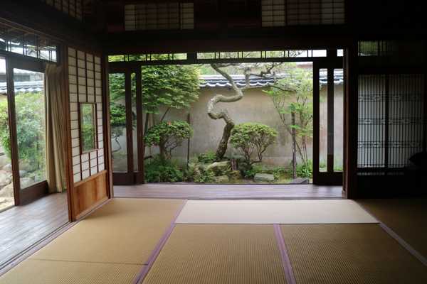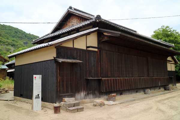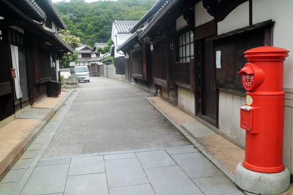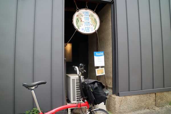 笠島には町並み保存地区があるので、立ち寄ってみた。狭い道路脇に本葺き瓦の古民家が並び、電柱も遠くへ移設してあり風情ある町並みを形成している。吉田家の前にブロンプトンを駐めて、見学していると同家の主人が偶然通りかかり、拝観しますか?と尋ねるので、思わずハイ!と答えると中に通され、拝観料500円を払って主人に説明を受ける。座敷に上がり最初に通されたのは便所。大、小共青い牡丹の花模様が施された特注の有田焼で惚れ惚れするような見事な便器であった。何でもこの家は海運業を営んでいた主人の祖父が大正時代に2,000円を投じて塩飽大工に依頼して建てたそうで、両親が他界したのを契機に一部を一般開放しているとの事。廊下の軒を支える12メートルの無節の杉丸太、廊下側にも作られた長押、気泡が入ってしまって少しうるうるする味のある窓ガラス、刀のツバをあしらった欄間、屋久杉の腰板、柱と桁、建具の精度たるや宮寺の建築そのものである。屋根は本葺き瓦で最近葺き替えたが、その他は100年前と同じだそうだ。日本建築の伝統美が今も息づいており、凄みさえ感じた。