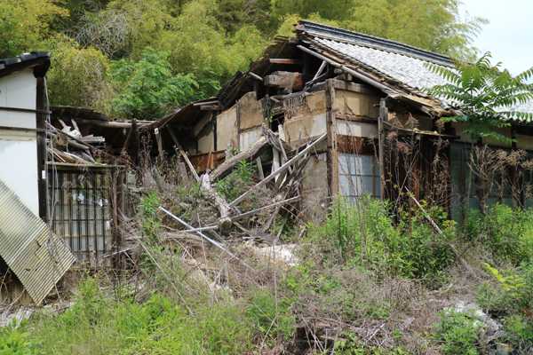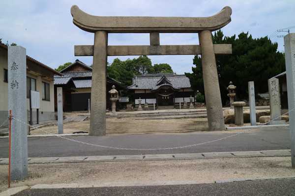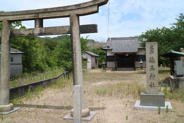 次は更に東に進み、瀬戸大橋の見える防波堤で休憩。国重要文化財の仏像を安置する東光寺に行ってみるも、門は倒壊の虞があるとの事で、ロープが張られ通行禁止。左側の迂回路から境内に入ると、客殿は倒壊寸前、本堂の屋根も崩れていたが仏像はコンクリートの堂に安置されているようであった。続いて徳玉神社へ行ってみる。こぢんまりとした境内に建つ社殿は破損も無く普通の状態。手入れがされていると思われる。