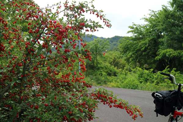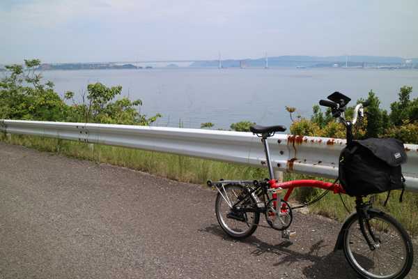 小阪港まで来ると前方に急な登り坂が見えて来た。ブロンプトンの変速機は右にハブ内臓の3段と左にギア切替の2段となっており、組み合わせると合計6段変速になっているが、タイヤが小径の16インチなので、道路状況によって小まめな切替が必要となる。