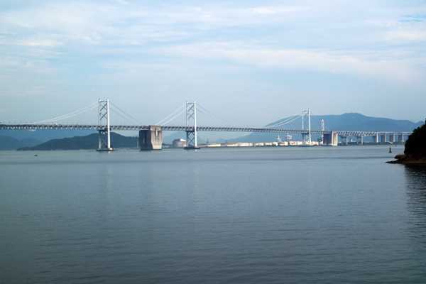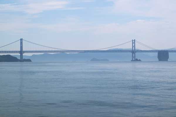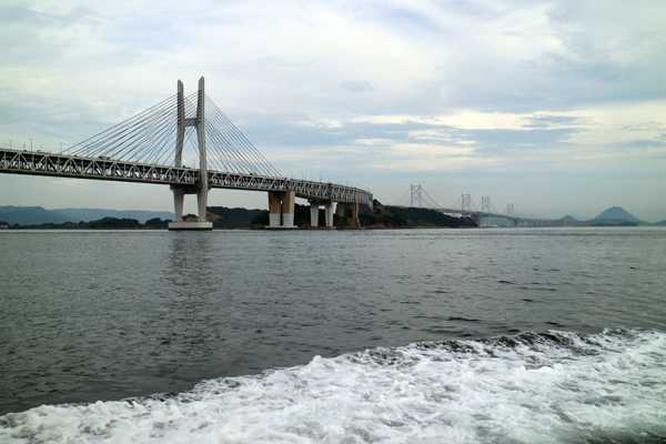 定時に出港したムクジマルホープはディーゼルエンジンを咆哮させながら想像していた以上の凄いスピードで走る。これは高速船の域だ。アッと言う間に児島競艇場を過ぎ鷲羽山展望台のある岬を回ると眼前に瀬戸大橋が広がる。櫃石島と岩黒島の間を抜けるルートで瀬戸大橋の真下を通過すると左手に与島、右手はもう本島だ。6月は年間で一番波が穏やかな時期なので、今日も波は殆ど無く湖の上を走っているようだ。そのせいか所要時間30分となっていたが、20分で本島港に到着。瀬戸大橋観光も出来て、これで片道615円は安い!得した気分になった。