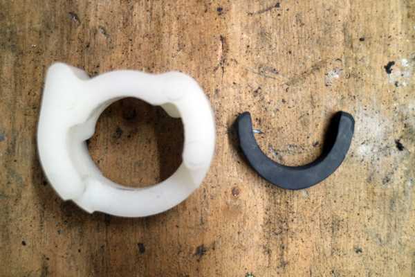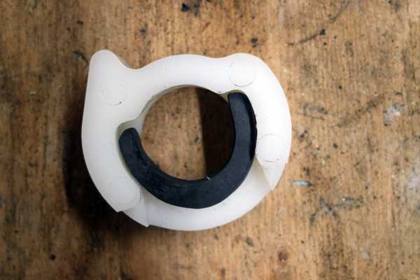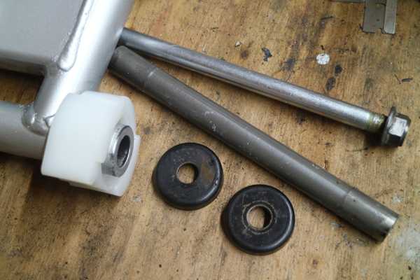 新品のスライダーを袋から出してスイングアームに嵌めてみると、なるほどブカブカだ。内径が2~3ミリ大きいので、ゴム板を三日月状に少しずつ成形しながら嵌め込んでみたら、ピタリと収まったので組み付けに掛かったら、ダストシールキャップが嵌まらない。外してよくみたらキャップの厚み分だけゴムを削る必要がある事が分かったが、そうすると歪な形のスライダーの内径との接触面が無くなってしまう。それでも何とかなるかもと思い限界まで削っていたらゴムが砕けた。今までの苦労が水の泡だ。腹が立ったので全部ゴミ箱に投げ捨ててやった。