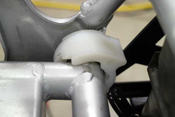 スイングアームのパイプ部分に嵌めるとブカブカのTLR200用チェーンスライダー