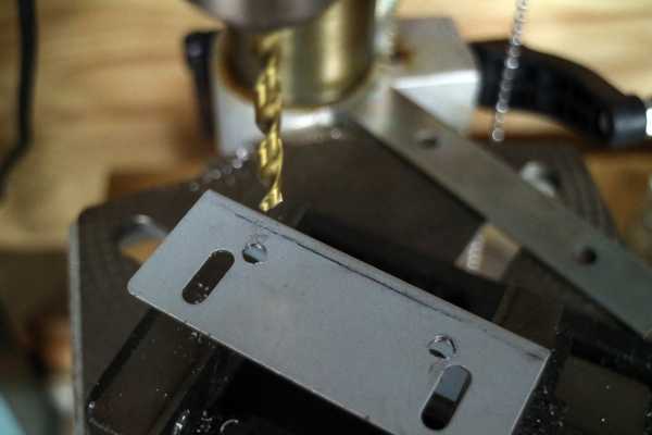 ステーにボール盤でアッパーブラケットへ取り付け用の穴を開ける