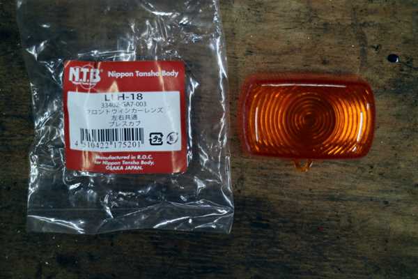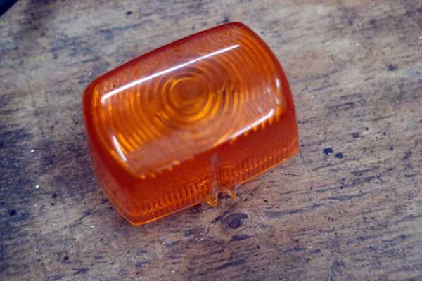 レンズを外して中を確認したら、2つ共6V/10Wのバルブが入っていたが、片方のレンズ取り付け部が割れていた。このウインカーレンズはHONDA車に多く採用されているのだが、ウインカー本体にレンズを取り付ける際、スクリュービスを少しでも締めすぎると直ぐに割れてしまう欠陥品だ。