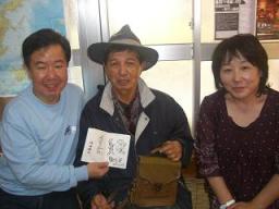 たまたま、うちに居合わせた興ちゃん兄さんと 横浜からいらした飯塚さん御夫妻は一緒に写真を 撮りました。 興ちゃん兄さんもサインをしたりして、ニコニコです。 いろんなところで講演をしたりして、ますます活躍している 興ちゃん兄さんです。若いでしょう! いっぺー にふぇーでびたん