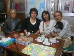 静岡にお住まいの野原御夫妻と鈴木さん父娘(左がわ)が 愛犬シンちゃんを連れて、こられました。 りんけんバンドのファンでいつも車などでCDを聴いています とのことで、三線も林次郎に注文なさいました。 ちとぅまでぃ(お土産まで) むっちち(持っていらして) にふぇーでぇびたん(ありがとうございました)