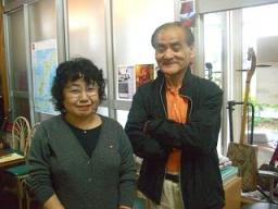 お二人とも沖縄の民謡を習いたいと訪ねてきました。 三線をお持ちでない森下さんは、後日三線を買いに こられました。 いっぺー(ほんとに)にふぇーでぇびたん(ありがとうございました) うたさんしんんでぃいるぐとぅ(唄三線というように) まじぇー(まず)うたから(唄から) うびーねー(覚えたら) でーやっさるはじどー(やりやすいと思うよ)