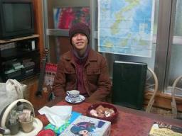 ダイビングと三線が好きで・・と三浦さん。 そこへ友利さんが来店。三線の話で盛り上がって 仲良く写真を撮りました。 宮古んかい(宮古に)ダイビングしーが(ダイビングをしに) いちゅんでぃる(行くという)三浦さん。 宮古んかい(宮古に)さとぅがえりすんでぃる(里帰りするという) 友利さん。 偶然ですね~