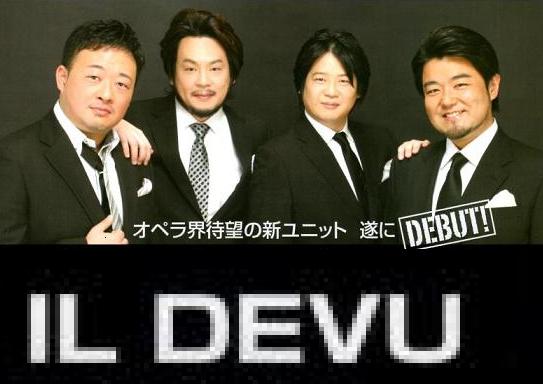 Classical Vocal Unit IL DEVU on TV-show tonight!Il Devu がテレビの音楽番組に登場!なんという楽しさ!なんかすごく感動しちゃった。だってそこにいる人たちは(5人)全員、この2012年になってから生で歌やピアノを聴いている人ばかり。大槻さんと望月さんはNHKニューイヤーガラ。大槻さんは昨年12月こうもり、今年ローエングリン(2回)青山さんと望月さんはエリヤ山下さんはタンホイザーとパルジファル(それぞれ2回の計4回)望月さん単独ではオランダ人2回、コジファントゥッテ、立川のガラ、白寿ホールのギターフェスタ。(過去にエレメル伯爵、ナラボートも)河原さんはコジと立川のガラ。なんて不思議なことでしょう!(しかしワーグナー率高し。)人の縁って本当に不思議です。ミラクルな邂逅ってやっぱりあるんです。先週末パルジファルのすばらしいグルネマンツだった山下さんが、まったく違う笑顔でそこにいるのを見て、なんか信じられなかった。あの大役を間近にしての収録だったでしょうに、にこやかで素敵で余裕が感じられました。青山さんの声ってすごくいい声ですね!バリトンなのに低くて重い、分厚い、そして艶がある。あらためて聴くとおお~と思いました。やはりロッシーニのレシピを食しただけある(笑こないだのエリヤとまた違う世界の曲(パサラ)。大槻さんもハイビジョンで見たらすごくハンサム~お声もハンサム~ネモリーノ来年行きたいですけど、平日の昼間なのかな。そして望月さん。やはり彼の頭の回転の良さがすごくわかりました。常に当意即妙。まじめには、彼が言っていた自分の(?)レンジの話がうれしかった。最高音をHigh C#(Cis:チス)までデーブは出していると話。逆に言えばHighDまでは出していないということですよね。おお~ではそういう作品も彼に期待できるんだ!ということたとえばネモリーノとかマントヴァは行けるでしょう。あとは4人の個性が違うのでアンサンブルがぶつかることもあるということ。今年は私にとってワーグナーイヤーでもありましたけど、もしかして「イル・デーヴ」イヤーだったんではないかという気がしてきました。12月のリサイタルも昼間なので行けません…。でも11月のヨハネ受難曲(山下さん、望月さん)はGiocondaさまのおかげで行けることになりました。感謝、感謝~今回のパルジファルではっきりわかりました。今の日本の若手ってすごい。なでしことか侍JAPANもすごいけど日本の歌手も世界で通用するレベルになっています。もしかしたらもうヨーロッパにコンプレックスを感じる時代は終わりつつあるのかも?新国立劇場に通ったのは外国人歌手が目当てだったけど、今や日本の歌手の方がキャスティング表を探すようになりました。2011年の事故もある程度そのきっかけにはなっていますけど…本当二期会の層の厚さに驚愕しましたもん…15日のパルジファルはそういう意味で私に転換点を与えました。もっともっと彼らの出る全幕オペラが見たいよ!!